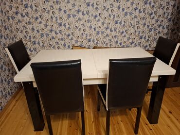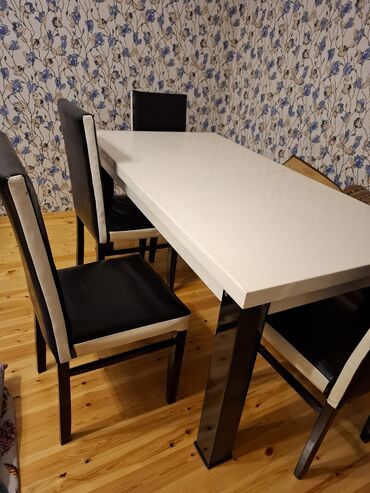 Ağ rəngli yemək masası və 6 ədəd stul dəsti