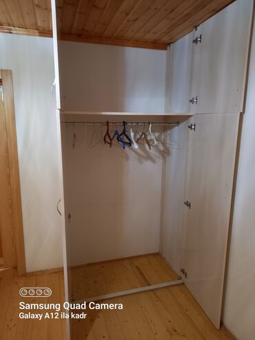 Ağ rəngli, yüksək tavanlı divar dolabı