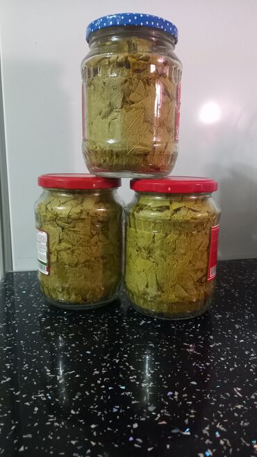 (üzüm yarpağı) – evdə hazırlanmış,gübrəsiz duzlu suda konservləşdirilmiş. satisda 3kq balon 12m 1kq banka 4m da var uzunsov dolma iri körpə yarpaq li bankalar da var 1kqlıq 4m