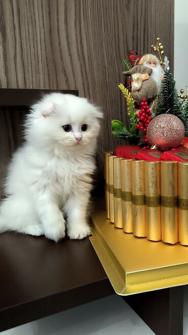 - Cinsə bənzər görünüş: Scottish Fold/Highland tipli (yumulmuş qulaqlar, iri qara gözlər, yumşaq və tüklü kürk)