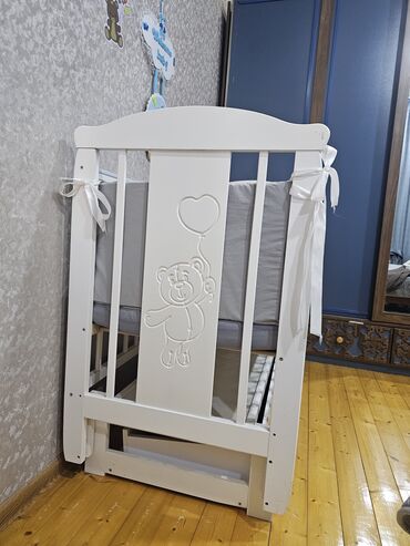 Uşag beşiyi satilir. Demek olar işlenmiyib. Matras ortopedikdi 100mnta alinib ustunde qoruyucusuda var