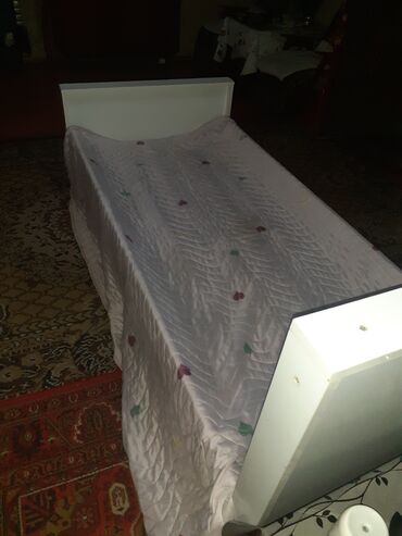 - Komplekt: çarpayı karkası. Üzərindəki açıq rəngli, ürək naxışlı örtü şəkillərdə nümayiş üçündür.