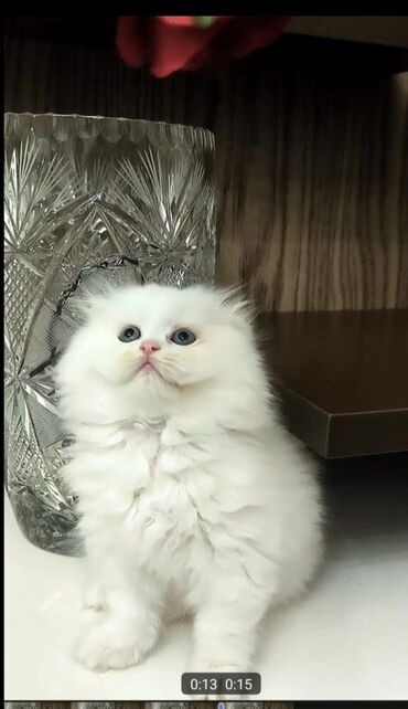 Ağ tüklü, uzun xəzli balaca pişik balası - Cins: uzun tüklü, qısaqulaqlı tip (yumru baş, qısa burun, dolğun yanaqlar) - Rəng: tam ağ, yumşaq və sıx xəz - Gözlər: iri, açıq mavi ton - Xüsusiyyətlər...