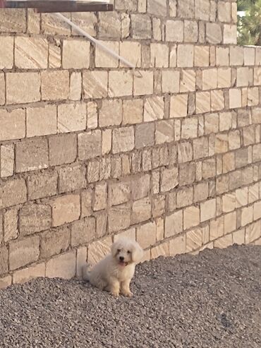 Ağ tüklü kiçik ölçülü it – poodle/bişon tipli xəzli ev heyvanı 6aylıqdır dişidir Cox yaxşı baxılır - Rəng: qar kimi ağ - Xəz: yumşaq, sıx və qıvrım; hipoallergen tipli tüklənmə (az tökülür), mütəma...