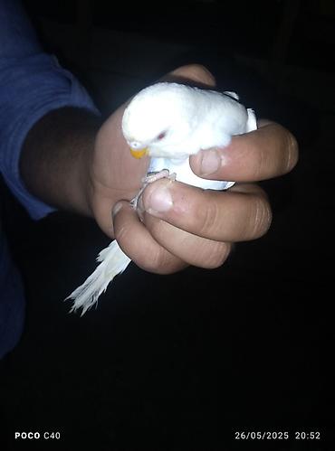 Ağ rəngli, balaca tutuquşu satılır. Evdə saxlamaq üçün idealdır. Baxımı asandır düm ağdi baladi