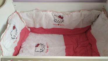 - Komplekt: Döşək (ağ, romb tikişli), daxili yumşaq qoruyucu bortlar və yastıq/örtük dəsti “Hello Kitty” naxışlı.