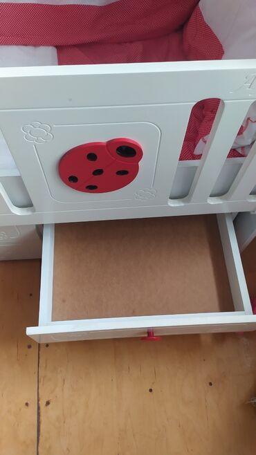 Uşaq beşiyi – ağ rəngdə, qırmızı detallarla. Az istifade olunum.