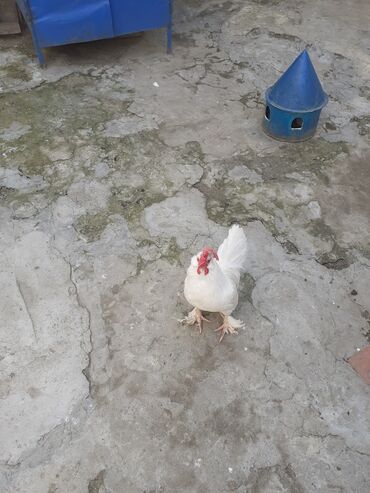 Ağ rəngli dekorativ xoruz - Tam ağ lələk örtüyü, dik və sıx quyruq - Qırmızı şux saqqal və daraq - Lələklı pəncələr, kompakt bədən quruluşu - Fərqli görünüşə malik dekorativ cins; həyət və ya voly...