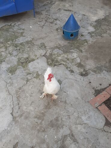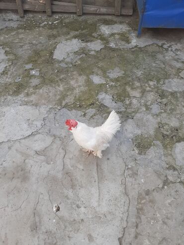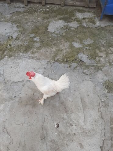 Ağ rəngli dekorativ xoruz - Tam ağ lələk örtüyü, dik və sıx quyruq -