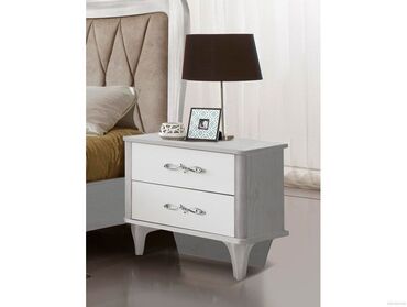 - İki çekmecəli tumba – yüngül ağ gövdə, parlaq ön hissələr, fiqurlu metal tutacaqlar, hündür ayaqlar.