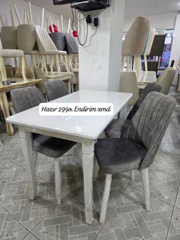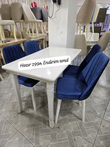 Ağ rəngdə yemək masası və 4 ədəd stul dəsti.
