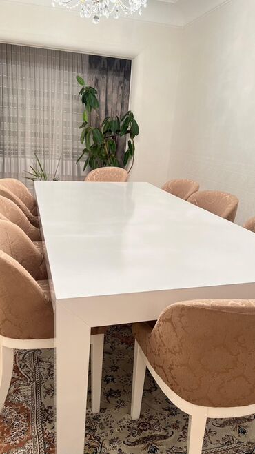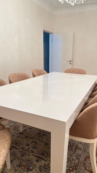 - Tərkib: düzbucaqlı parlaq səthli ağ yemək masası və uyğun stul dəsti + jurnalni