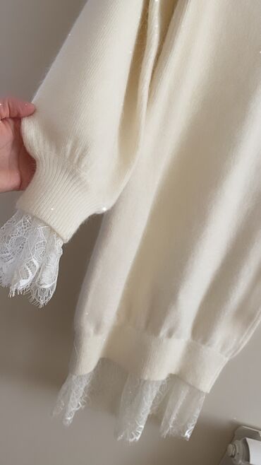 Ağ yun don.Qol ucları və ətək krujevalı. Coco Baku mağazasından 120