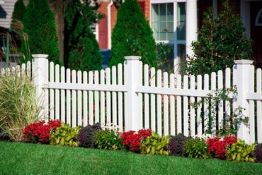 Ağ rəngdə, klassik dizaynlı çəpər. Bağ və ya həyət üçün dekorativ və