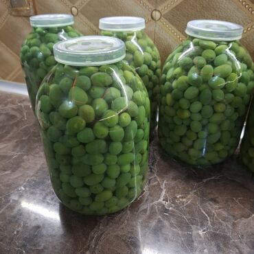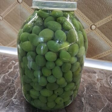 Ev üsulu duzlu yaşıl zeytun – şüşə bankalarda - Məhsul: bütöv yaşıl zeytun - Hazırlanma: ənənəvi üsulla duzlu suda (brində) konservalanıb - Banka tipi: şüşə, metal qapaqlı - Tutumu: iri həcmli ban...