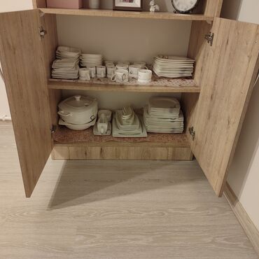 - Alt hissə: 2 qapılı qapalı bölmə, içəridə 1 rəf – qab‑qacaq, məişət əşyaları və s. üçün