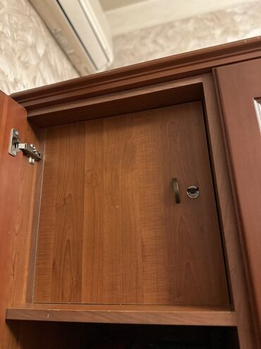 - Yuxarı hissədə üç qapılı dolab: daxili rəflər, kitab, qab-qacaq və məişət xırdaları üçün