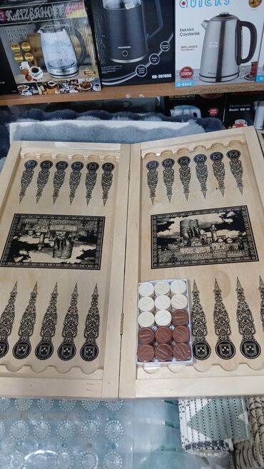Taxta nərd dəsti – “Baku” dizaynı - Material: təbii ağacdan hazırlanmış qatlanan lövhə - Üz qabıq: “Baku” yazılı, Alov Qüllələri motivli oyma/yanıq naxış - Daxili: Qız qalası və İçərişəhər təsvirl...