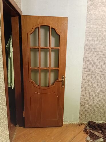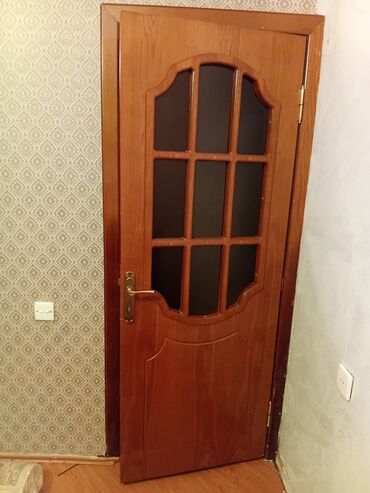 • 3 ədəd otaq qapısı: dekorativ panellərlə, üst hissəsi mat şüşəli “barmaqla bölünmüş” klassik dizayn. Qızılı rəng menteşələr və tutacaqlar.