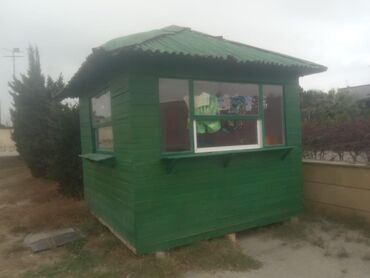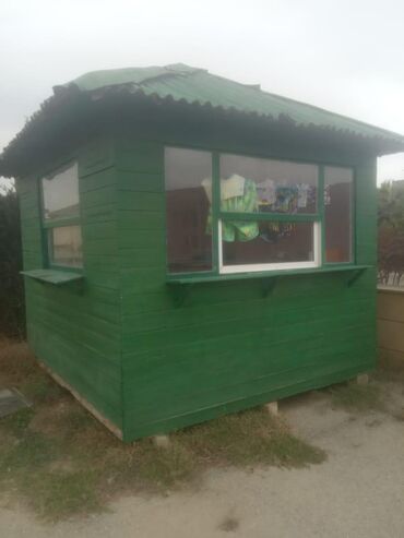 Küçük ticarət köşkü / boks - Metaldan yığma köşk, ön və yan hissələrdə dəmir barmaqlı pəncərələr - Ön tərəfdə iki qanadlı metal qapı - Üstü dalğalı sinklənmiş “şifer” tipli dam örtüyü, ön hissədə ...