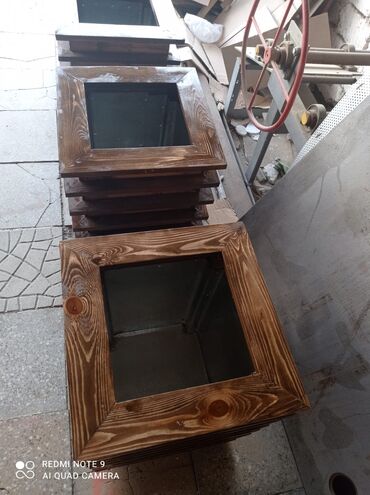 Açıq havaya uyğun dekorativ taxta gülbəçələr - Material: təbii ağacdan yığma konstruksiya, iç tərəfi suya davamlı örtük/plyonka ilə izolyasiya olunub. - Rənglər: qəhvəyi (ağac teksturalı), ağ, qar...