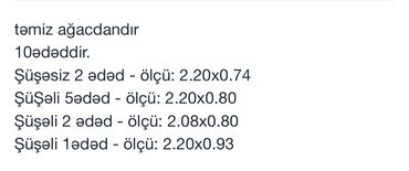 Taxta, baget, 8lik MDF, ustu boya modeli, 3petle, zamok, çərçivə və naliçnik, 1kubik divara absivka daxildi qiymətə. 3 ve daha artiq qapi olduqda seher daxili odenissiz catdirilma.