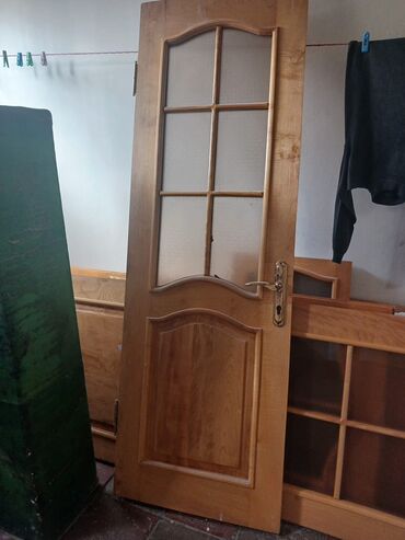 Ağcaqayın rəngli massiv ağacdan interyer qapıları və şüşəli yarımşəffaf üst hissəli modellər.