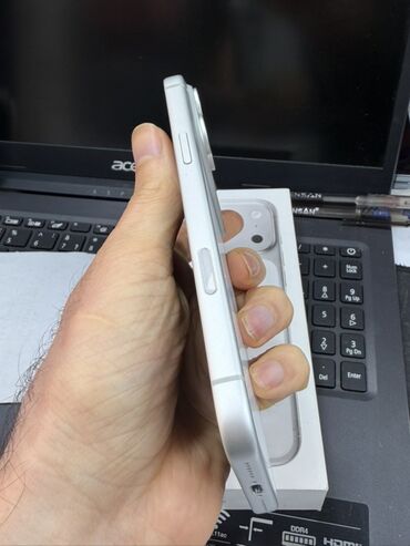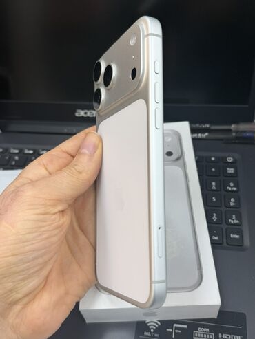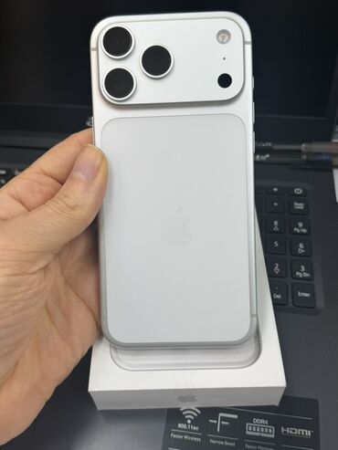 17 Pro Max Az işlənib Pil 100% Devir sayi 55 Yenidən seçilmir Məhsul: iPhone – ağ/gümüş rəngli, qutusu ilə Xüsusiyyətlər: - Korpus: Alüminium çərçivə, ağ arxa səth, yuxarı hissədə inteqrə kamera...