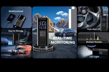 SUITU portativ hava kompressoru və təkər şişirdici Xüsusiyyətlər: - Rəqəmsal LED ekran: PSI, BAR, KPA, Kg/cm² vahidlərində təzyiq göstəricisi və hədəf dəyərin seçilməsi. - Daxili proqramla avtomat...