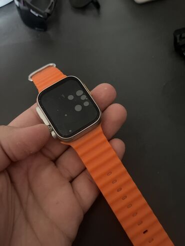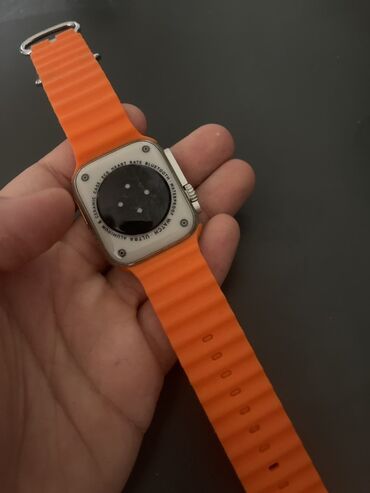 Məhsul: Ağıllı saat, kvadrat ekranlı, metal (gümüşü tonlu) korpus, parlaq narıncı silikon/ruber qayışlı.Qiymette coxxx cuzi endirim olacag gül kimidir her seyi ishleyir