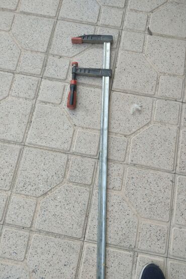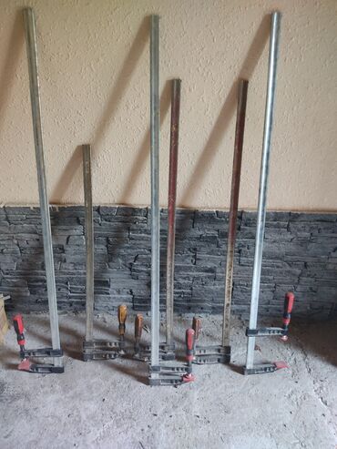 - Uzun zolaqlı boru sıxacları (fərqli uzunluqlarda 6 ədəd): metal rels, vintli mexanizm və rezin ucluqlar. Taxta lövhələrin yığılması, mebel istehsalı, yapışdırma və düz sıxma işləri üçün uyğundur.