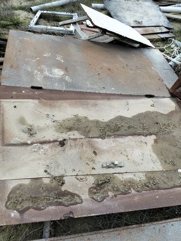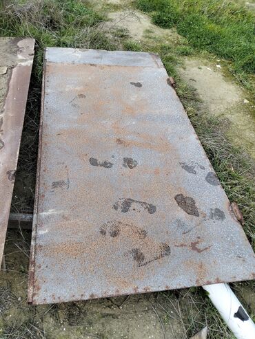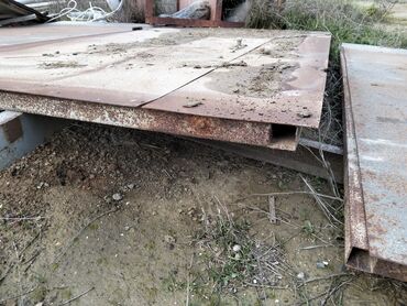 Metal lövhələr – müxtəlif ölçülü ağır polad təbəqələr Xüsusiyyətlər: - Material: qalın polad/metal - Ölçülər: bir neçə müxtəlif ölçü var (uzun düzbucaqlı və kvadrat lövhələr) - Səth: kobud, sənaye...