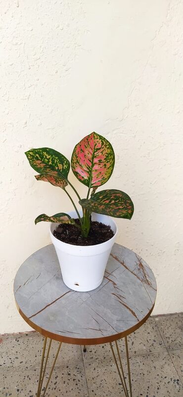 Bitki: Aglaonema (rəngli sort – yaşıl yarpaqlarda çəhrayı ləkələr)