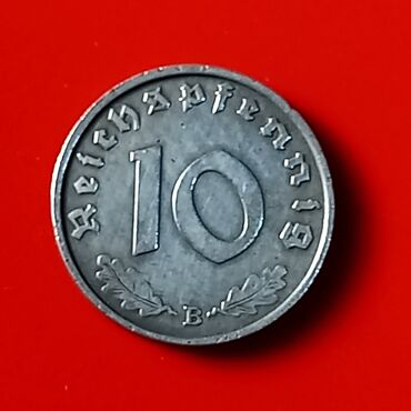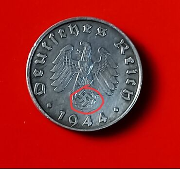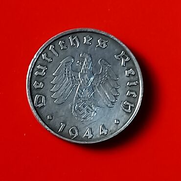 A.Hitlerin dövürnə aid nadir tapılan (Svastikalı) 10 Reyfspfenngi 1944 metalı: Sink.