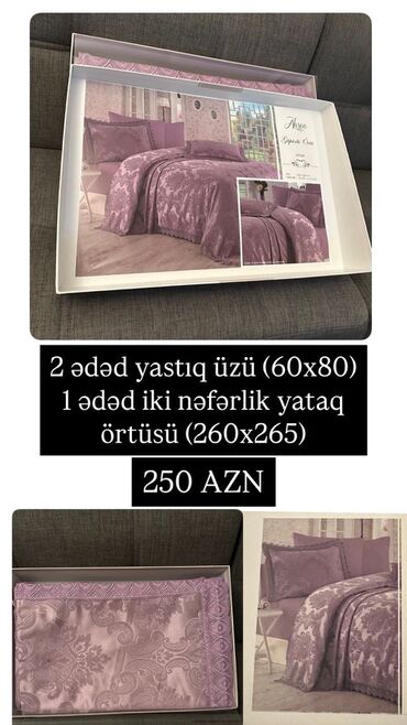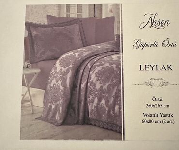 Geyizce Home Textile – Yataq Örtüsü Dəsti (GULFEM) Məzmun: - Yataq örtüsü: 260 x 260 sm (1 ədəd) - Yastıq üzlüyü: 50 x 70 sm (2 ədəd) - Bəzək yastığı: 50 x 50 sm (1 ədəd) Xüsusiyyətlər: - Zərif k...