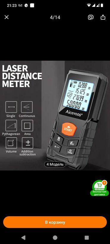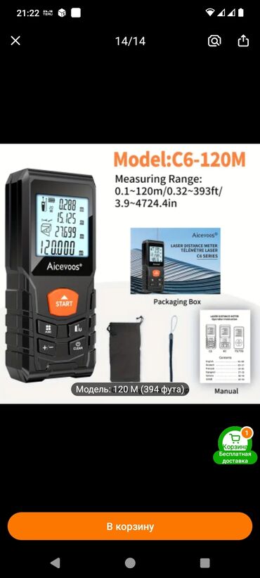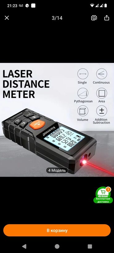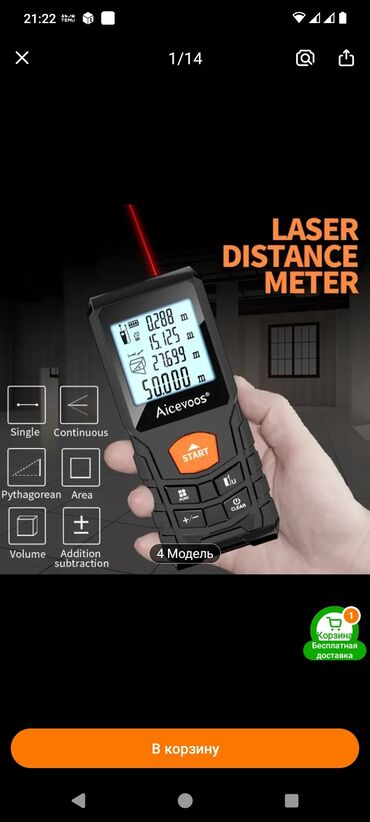 Qutuda: lazer məsafəölçən cihazı (Laser Distance Meter).