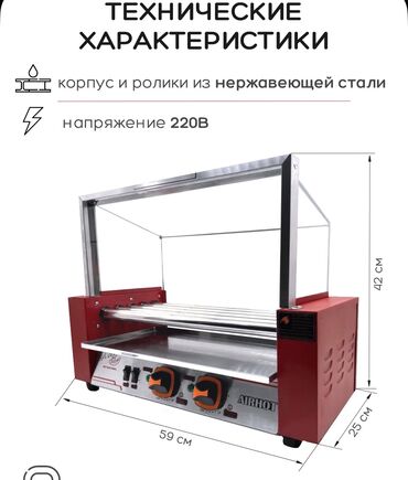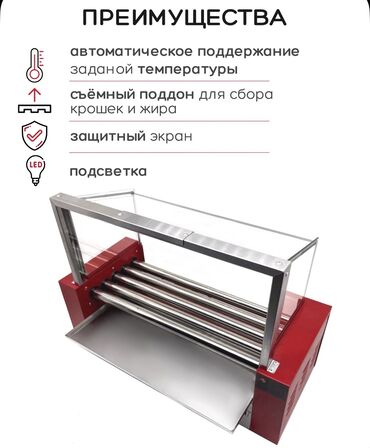Tətbiq sahələri: sürətli qida nöqtələri, kafe, bufetlər, marketlərdə hot-dog zonası və s. Rulonların bərabər fırlanması sayəsində məhsul yanmadan, hər tərəfi eyni dərəcədə qızarır; çıxarılan poddon isə təmizliyi asanlaşdırır. İki müstəqil termozona sayəsində eyni anda bişirmə və isti saxlamanı ayırmaq mümkündür.