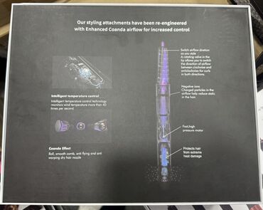- Coanda hava axını texnologiyası: buruq, dalğa, düzləşdirmə və uçuşan telləri yatırmaq üçün gücləndirilmiş hava axını; sərt istilik olmadan formalaşdırma.