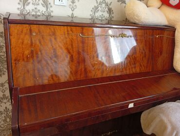 Kolleksiya dəyəri olan, retro sovet pianinosu. Musiqi təhsili və ev məşqləri üçün klassik upright formatı. Dekorativ görünüşü interyerə vintage ab-hava qatır.