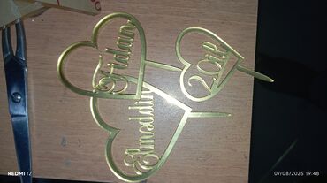 - Xına, nişan və toy aksesuarları üçün yazılı lövhəciklər, dekorativ şam altlıqları, bəzək elementləri