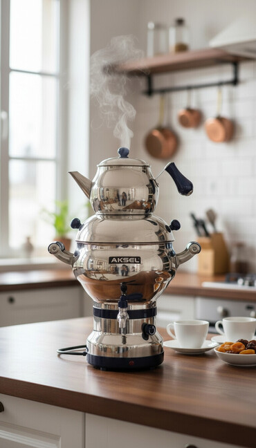 AKSEL elektrikli samovar/çaydanlıq – 5 litr - Brend: AKSEL - Model: Teasam Classic - Tutum: 5 L (aşağıdakı qazan hissə). Türk malı. Ətraflı məlumat üçün zəng edin.