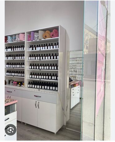 - Mağaza içi elementlər: güzgü paneli, şüşə giriş qapısı, vitrin altında əlavə çekmecələr.