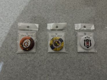 - 3 ədəd metal badge/pin. Üzərində məşhur Türkiyə futbol klublarının loqoları təsvir olunub: Galatasaray, Fenerbahçe, Beşiktaş. Hər biri ayrı blister paketindədir. Sancaqlı arxa hissə ilə geyimə, çantaya və ya papağa asanlıqla taxılır. Diametr təxmini: 3–3,5 sm.