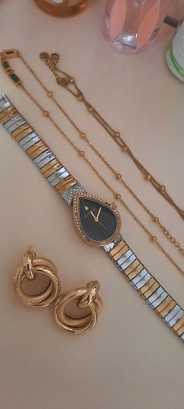 Aksesuar dəsti - Qol saatı: armud formalı qara siferblat, qızılı