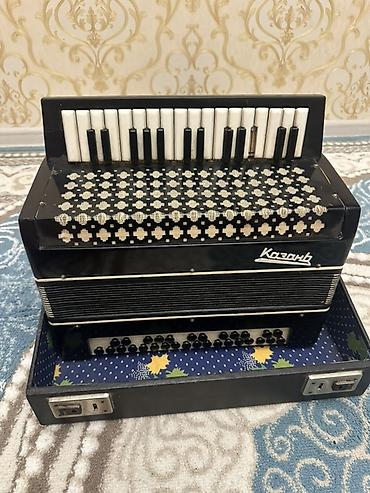 Kazanь marka akkordeon - Tip: Piano klaviaturalı bayan/akkordeon - Klaviatura: sağ tərəfdə 25 ədəd piano düyməsi (ağ-qara) - Sol tərəf: bas və akkord üçün sətirlərlə düymə sistemi (çoxsıralı, yuva...