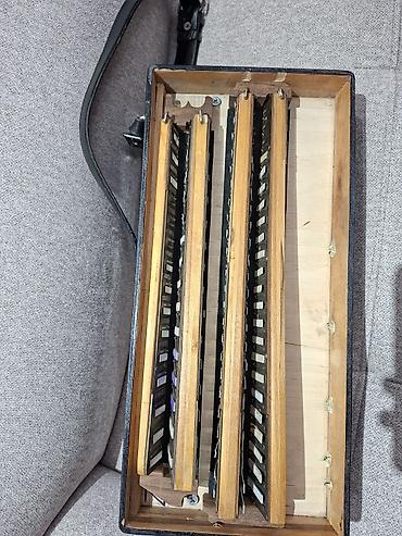 Harmoniya (akkordeon) – “Казань” markası - Korpus: laklı qara rəng, klassik dizayn - Sağ klaviatura: 25 ədəd pianino tipli ağ-qara düymə - Sol tərəf: bas və akkord üçün çoxsıralı düymələr - Müşəbb...