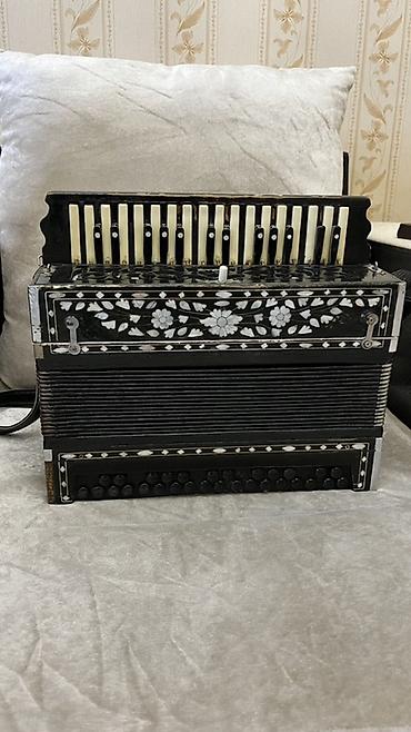 Harmoniya (akkordeon) – “Казань” markası - Korpus: laklı qara rəng, klassik dizayn - Sağ klaviatura: 25 ədəd pianino tipli ağ-qara düymə - Sol tərəf: bas və akkord üçün çoxsıralı düymələr - Müşəbb...