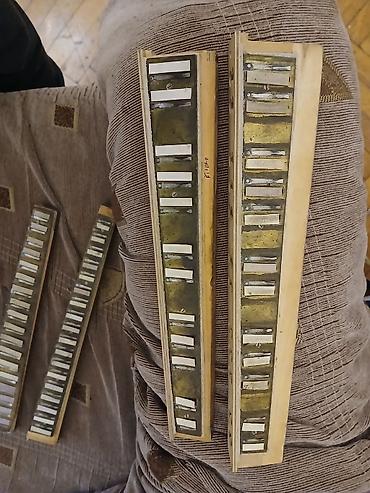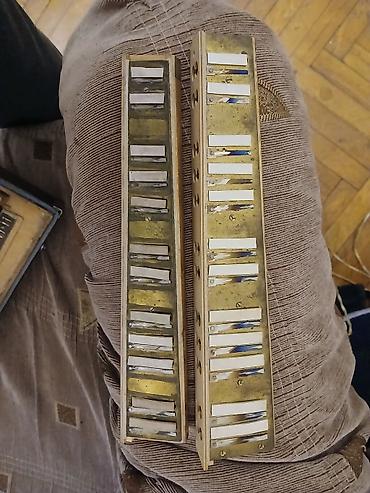 Kuzneçov “Кузнец” markalı akkordeon - Klaviatura tərəfi: piano tipli 25 klaviş (ağ-qara), sol tərəfdə registr düymələri. - Bas tərəfi: düyməli sistem, iki sətirdə ağ-qara bas və akord düymələri. -...