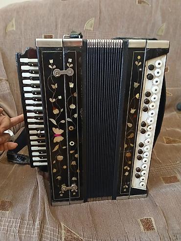 Harmoniya (akkordeon) – “Казань” markası - Korpus: laklı qara rəng, klassik dizayn - Sağ klaviatura: 25 ədəd pianino tipli ağ-qara düymə - Sol tərəf: bas və akkord üçün çoxsıralı düymələr - Müşəbb...