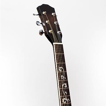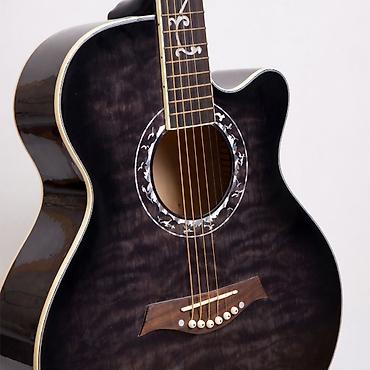 Şık tünd rəngli, kəsikli korpuslu akustik gitara və gündəlik məşq, ifa və səhnə üçün lazım olan aksesuarlar bir arada. Rezonans halqasındakı dekorativ naxışlar və klaviyaturadakı inleylər alətə xüsusi xarakter qatır. Taxta körpü və metal simlər balanslı, dolğun səs verir; rahat boyun profili uzunmüddətli məşqlərdə komfort yaradır.